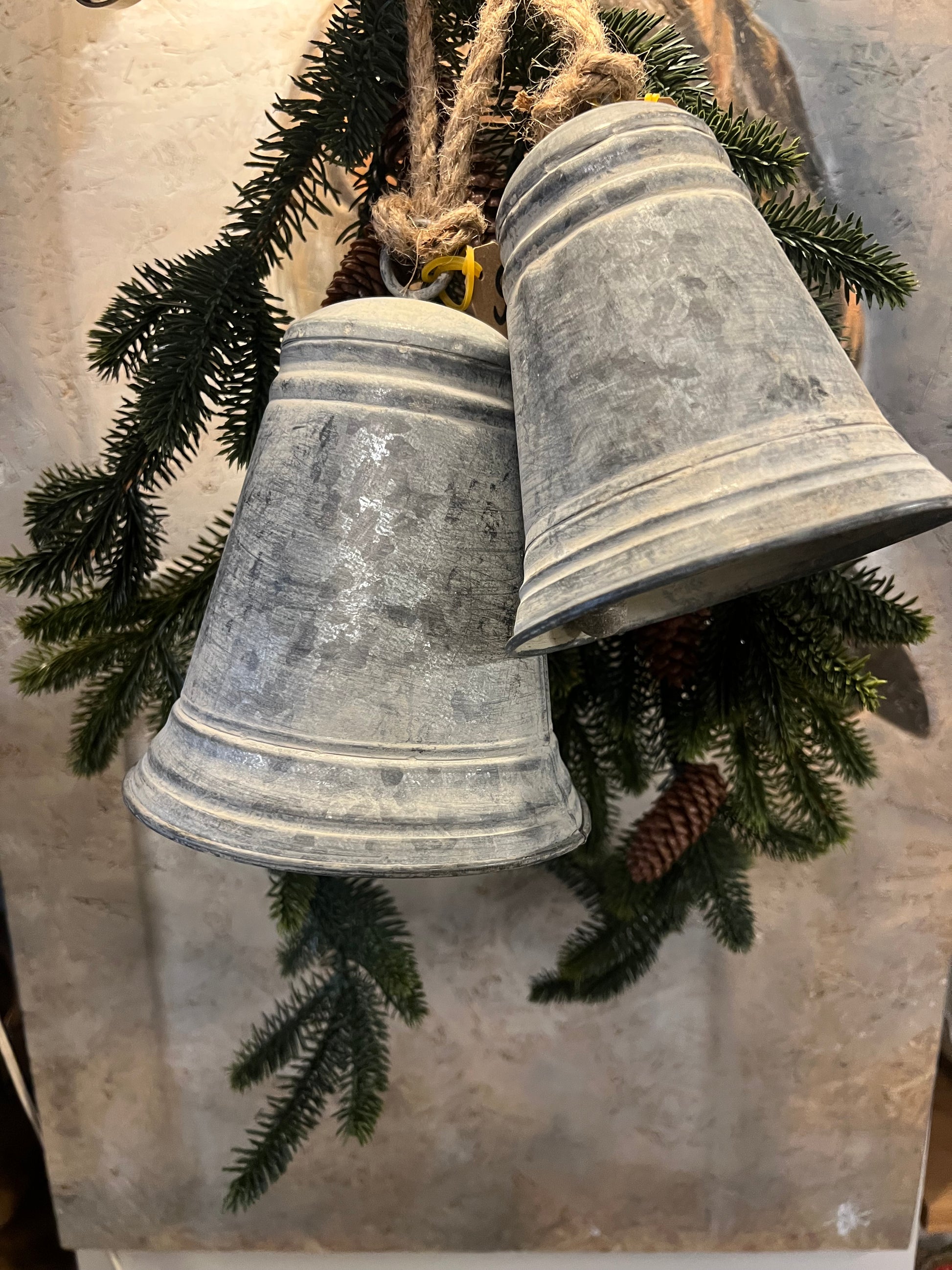Deze robuuste metalen kerstbellen in twee maten zorgen voor een sfeervolle, landelijke uitstraling in huis. Met hun verweerde zilvergrijze afwerking en grove jute ophangkoord passen ze perfect bij een natuurlijke kerststijl. Hang ze aan een deur, muur of samen met dennentakken en dennenappels voor een warm winteraccent.