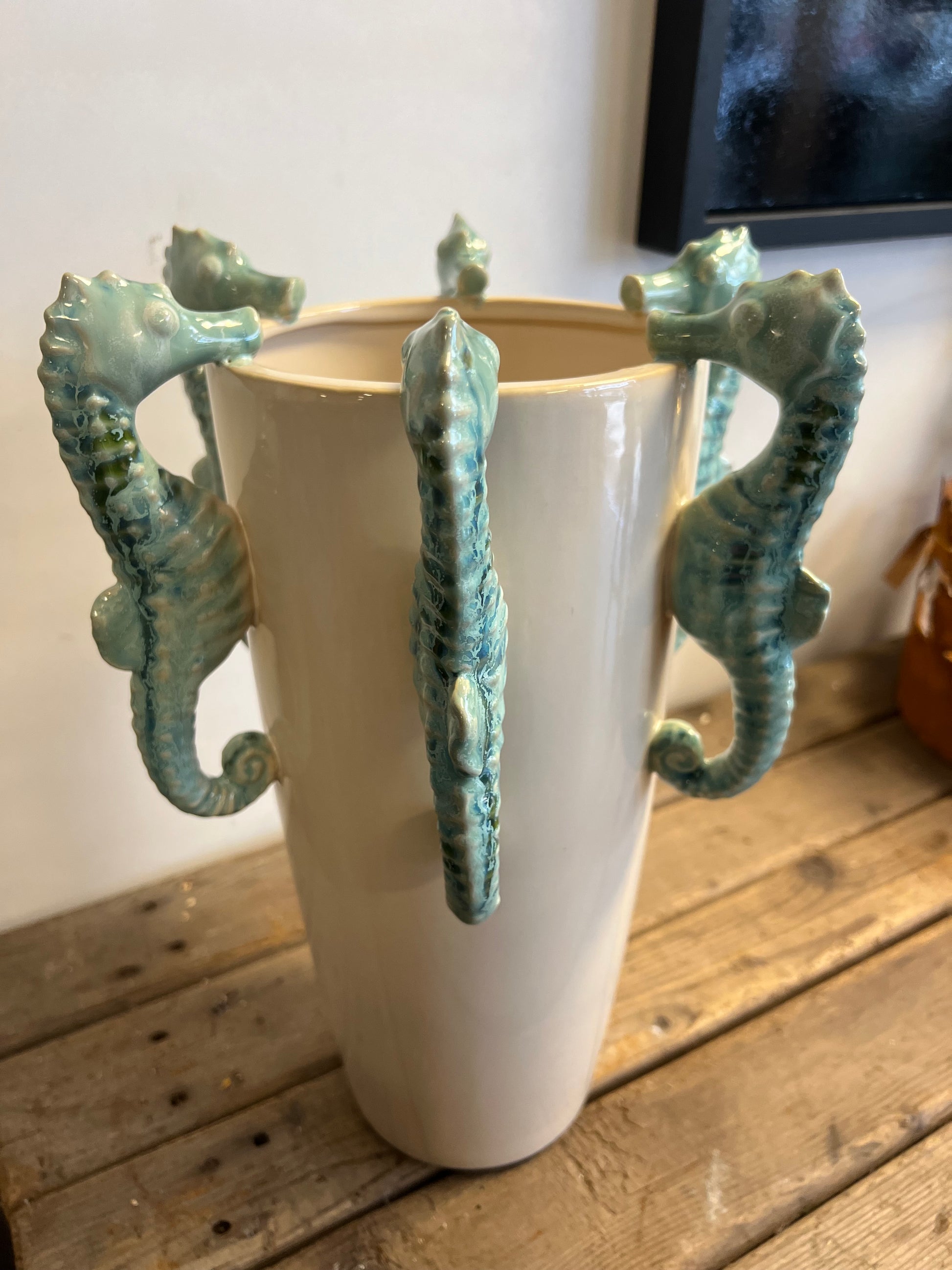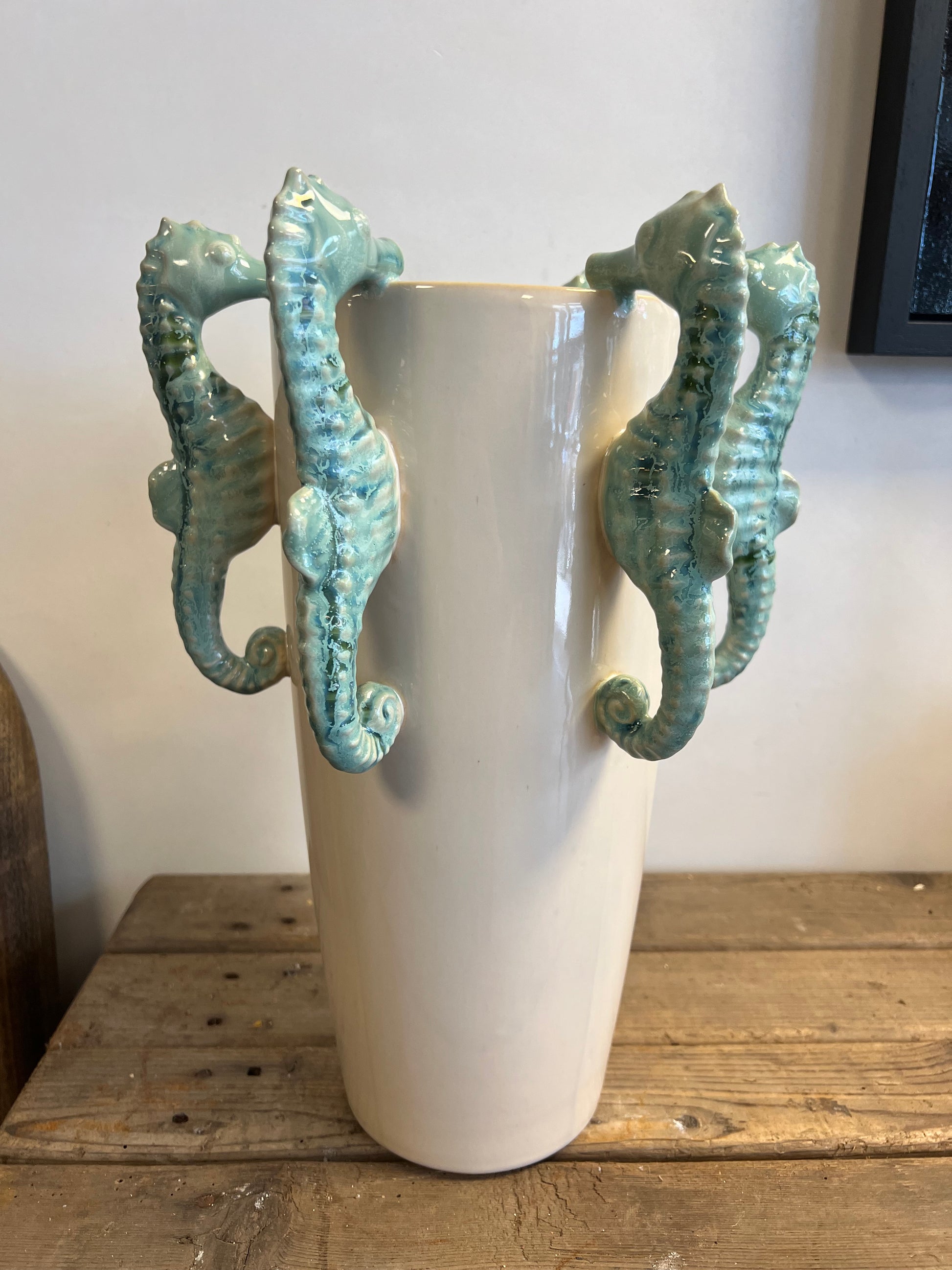 Handgemaakte Vaas met Zeepaardjes: Een Maritiem Accent voor Jouw Interieur