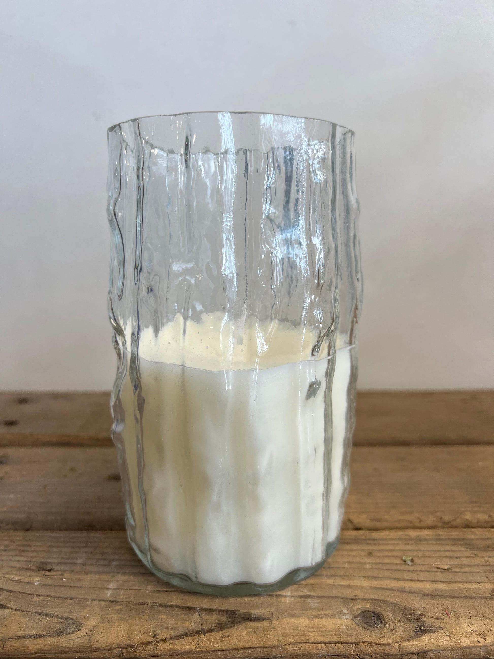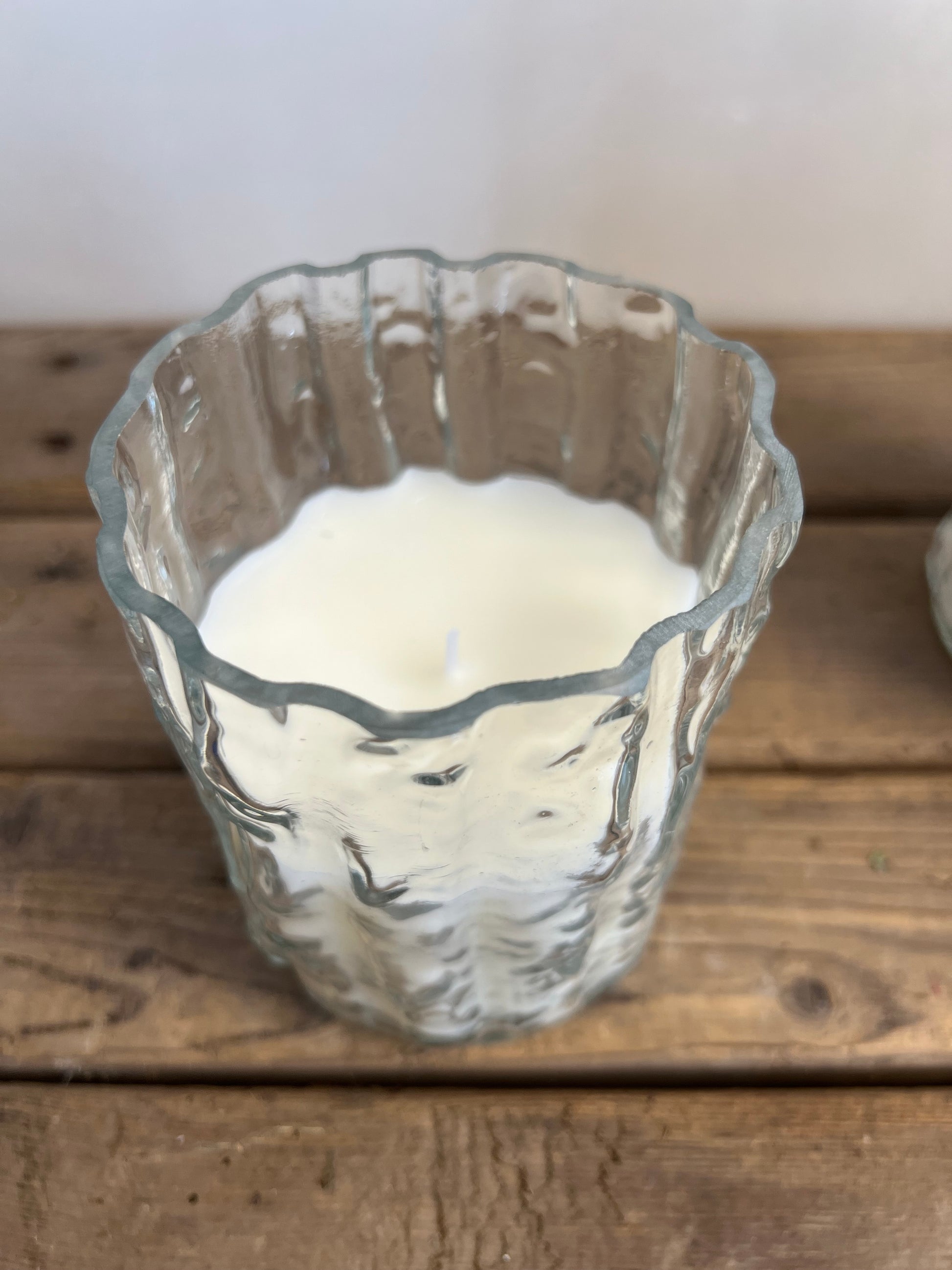 Breng warmte en gezelligheid in jouw huis met onze prachtige kaarsen in unieke glazen houders. Deze handgemaakte kaarsen zijn niet alleen een lust voor het oog, maar zorgen ook voor een ontspannen ambiance. Dankzij het elegante design met een speelse structuur passen ze perfect in elk interieur, van modern tot landelijk.