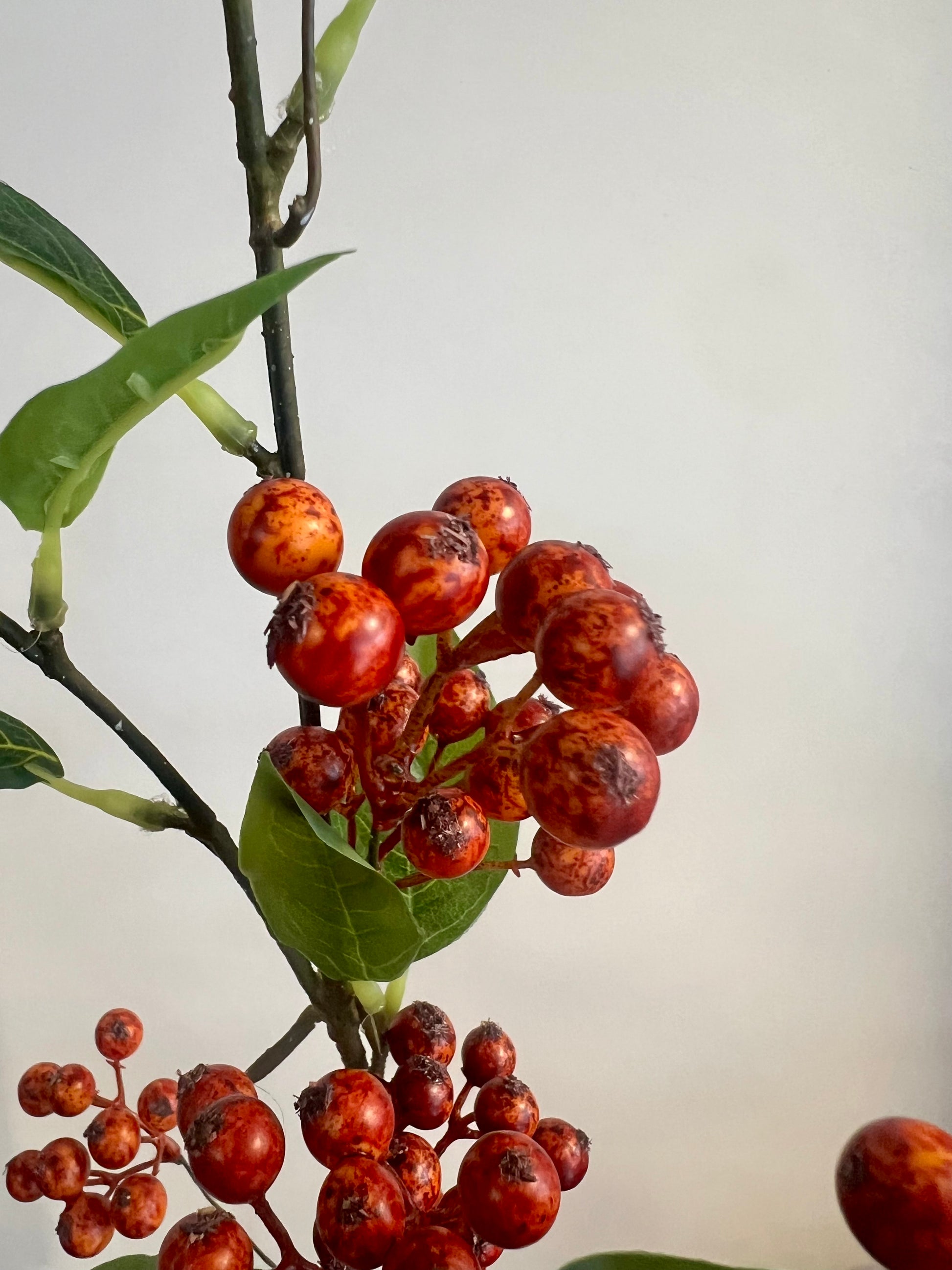 Breng een vleugje natuur in uw interieur met onze prachtige kunst bessen tak. Deze tak is perfect voor het toevoegen van kleur en textuur aan elke ruimte. Met realistisch ogende bessen en groene bladeren, is deze decoratie veelzijdig en stijlvol.