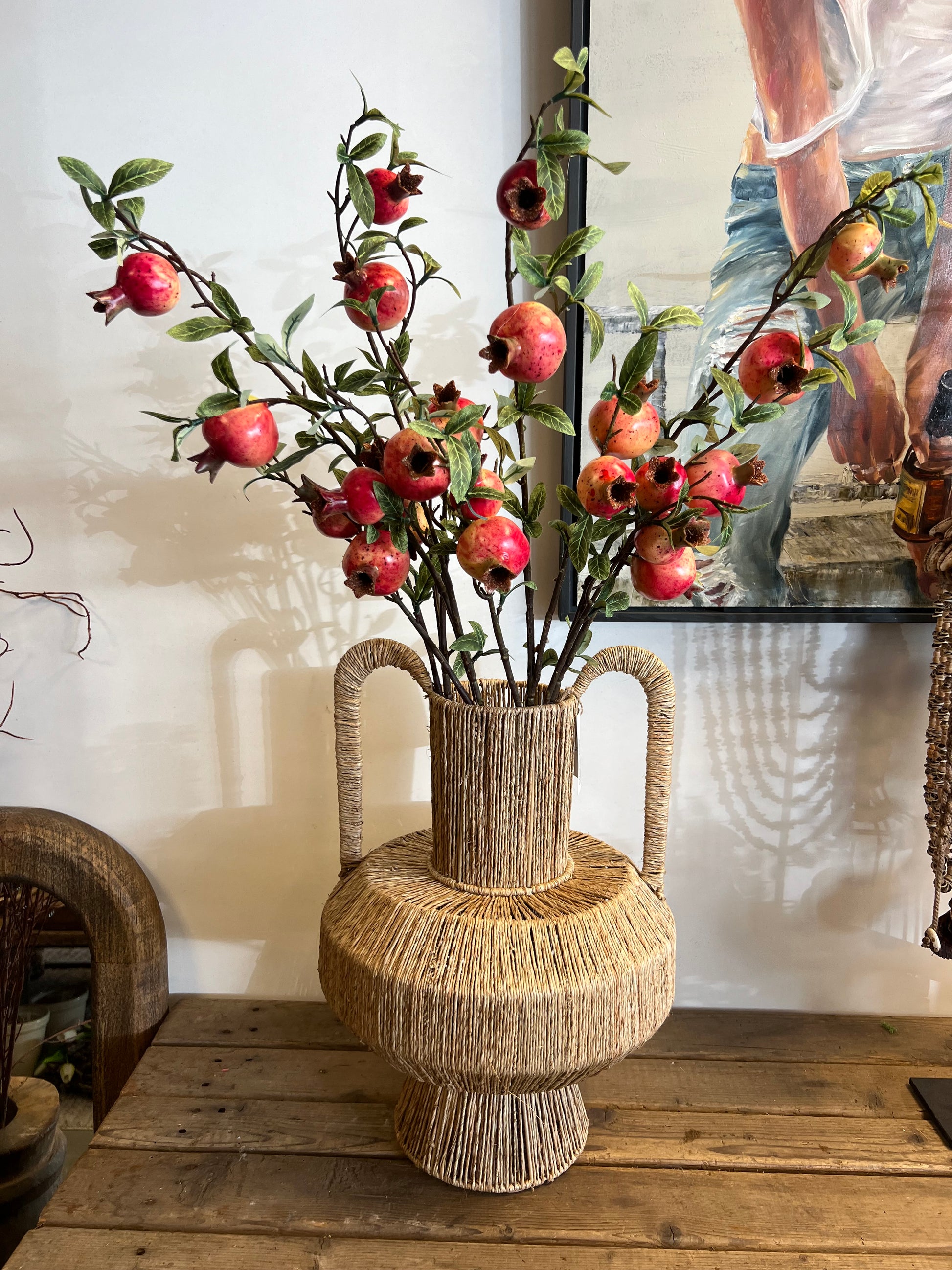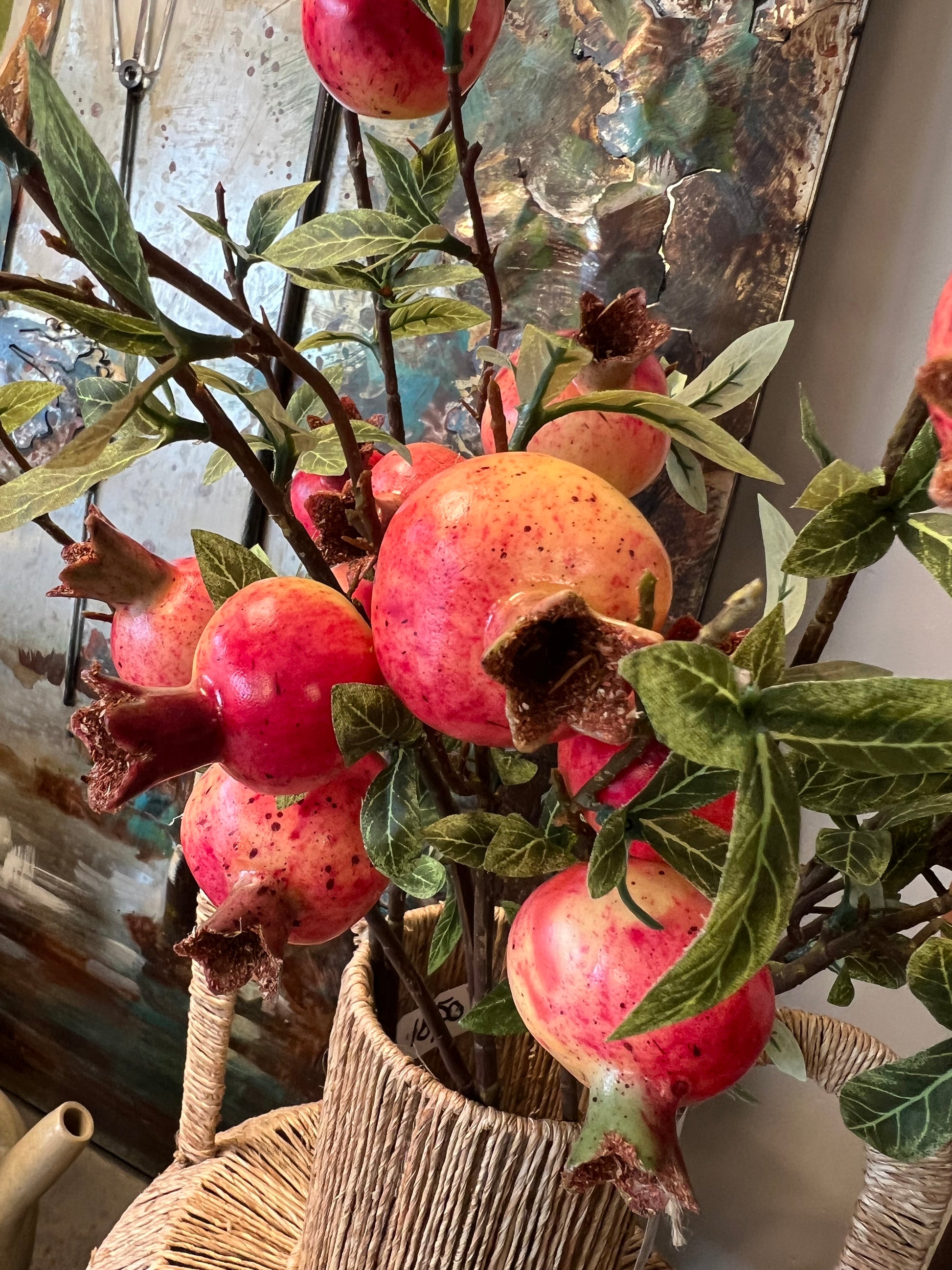 Kunst granaatappel takken zijn een prachtige en onderhoudsvrije manier om warmte en kleur in je interieur te brengen. Met hun realistische rode vruchten en groene bladeren zorgen deze decoratieve takken direct voor een luxe en natuurlijke uitstraling. Perfect als eyecatcher in een grote vaas of gecombineerd met andere kunsttakken voor een speels effect. Ideaal voor woonkamers, keukens of horecagelegenheden waar je lang wilt genieten van een stijlvolle en frisse sfeer zonder onderhoud. Voeg met kunst granaatappel takken een vleugje mediterrane charme toe aan jouw interieur!