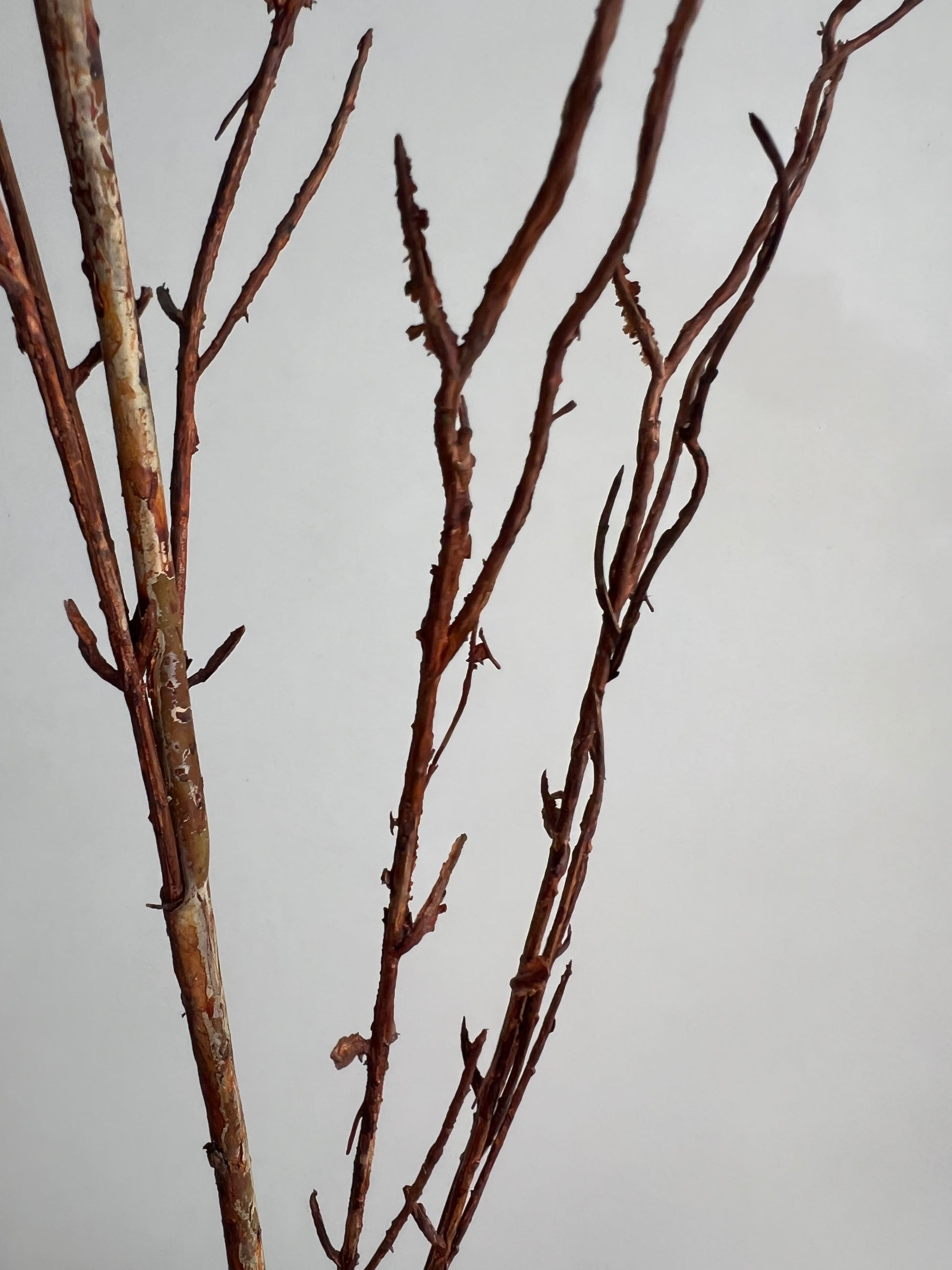 Natuurlijke decoraties, zoals de sierlijke takken in de afbeelding, brengen een unieke charme in elk interieur. Deze takken, met hun organische vormen en subtiele kleurtonen, bieden een prachtig contrast met moderne kunst en kunnen een ruimte tot leven brengen.