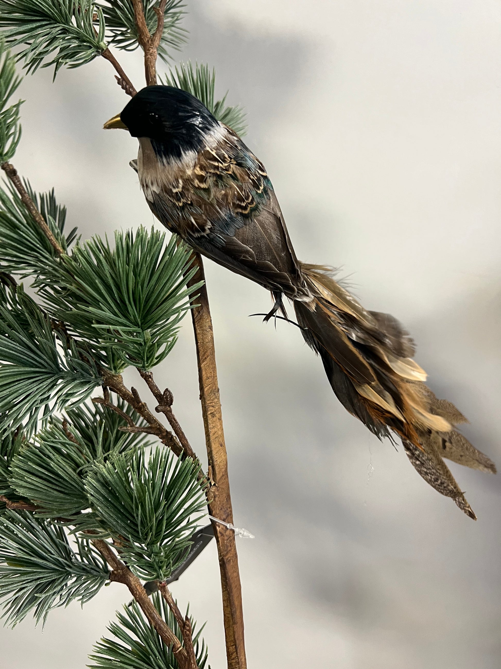 Dit prachtige kunstvogeltje, gemaakt met echte veren, is een unieke aanvulling voor elk interieur. De gedetailleerde afwerking en de natuurlijke kleuren geven het vogeltje een levensechte uitstraling. Perfect voor liefhebbers van natuurdecoraties, dit kunstwerk brengt een vleugje elegantie en charme in uw huis.
