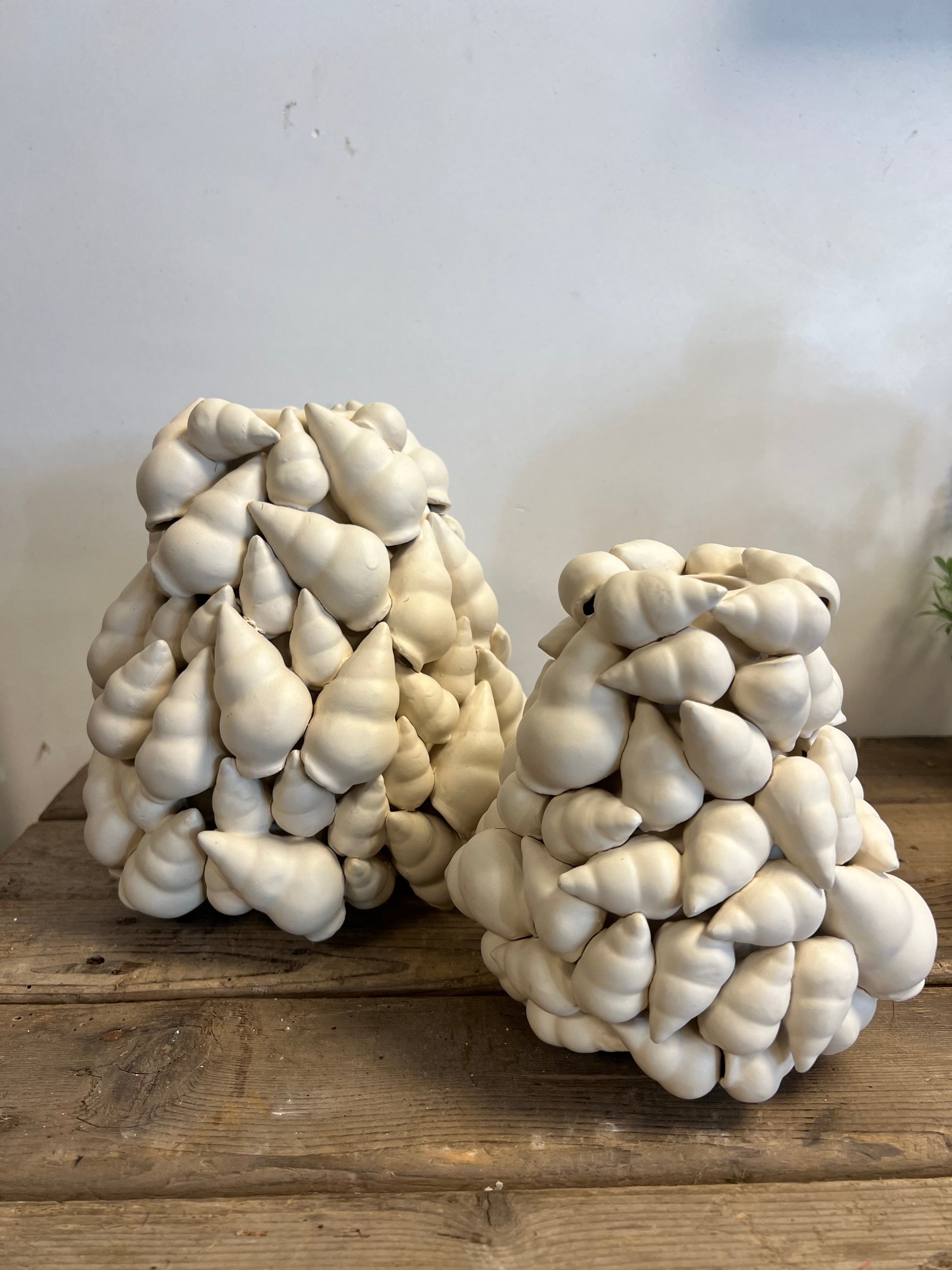 Deze bijzondere vazen zijn een perfecte mix van kunst en functionaliteit. Met hun organische vormen en speelse structuur brengen ze een eigentijdse flair in elke ruimte. Gemaakt van hoogwaardig keramiek, zijn deze vazen niet alleen een lust voor het oog, maar ook robuust en duurzaam.
