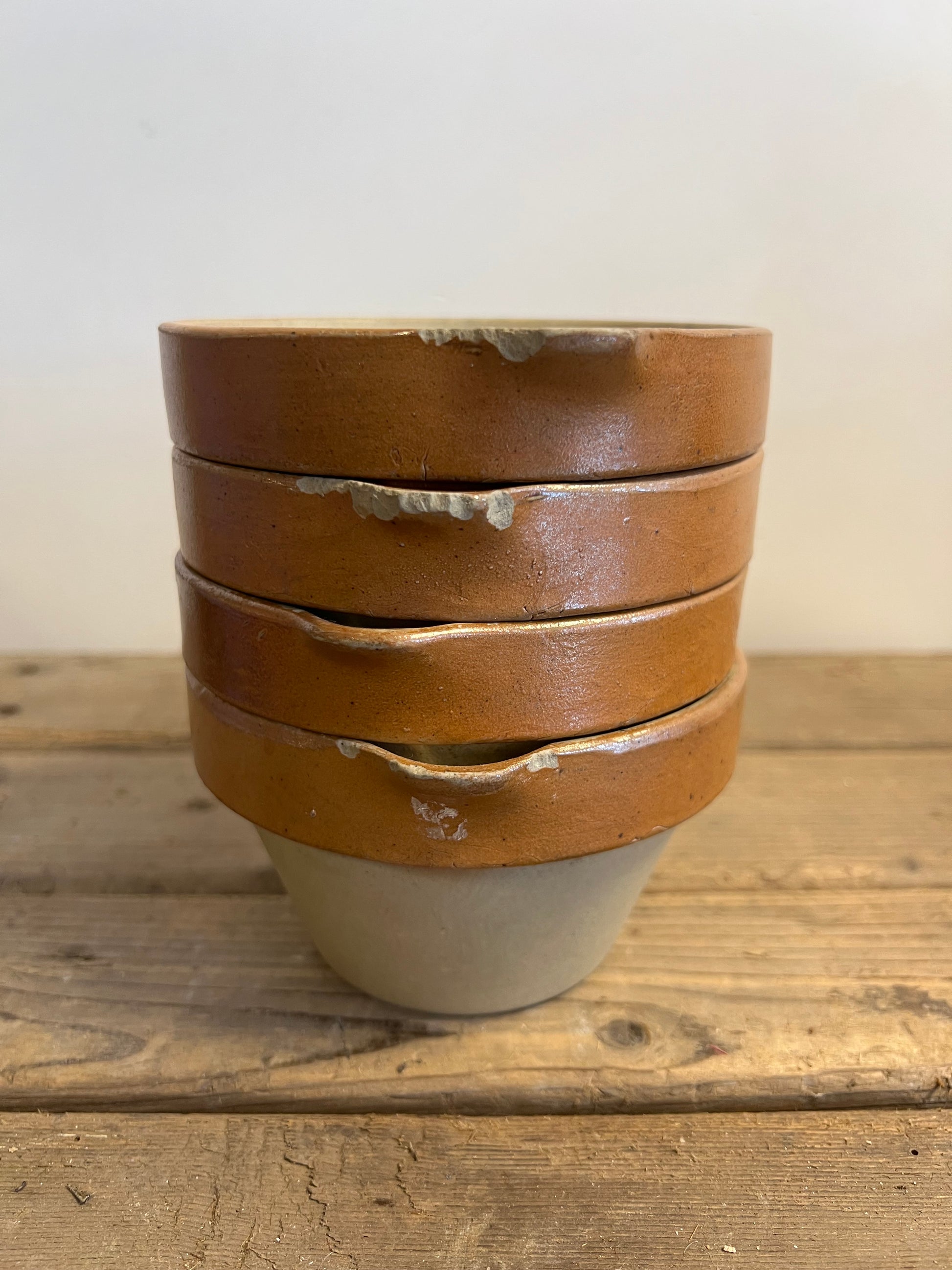 Ontdek de charme van onze handgemaakte keramische kommen, perfect gestapeld voor een stijlvolle presentatie. Deze set van vier kommen combineert een warme, aardse bruintint met een neutrale beige basis, waardoor ze een veelzijdige aanvulling zijn op elk servies. Ideaal voor het serveren van salades, snacks of desserts, deze kommen zijn niet alleen functioneel maar ook een prachtig decoratief element voor je tafel. Gemaakt met zorg en aandacht voor detail, weerspiegelen ze de rijke traditie van keramiek. Voeg een vleugje artisanale flair toe aan je eetervaring met deze prachtige kommen!