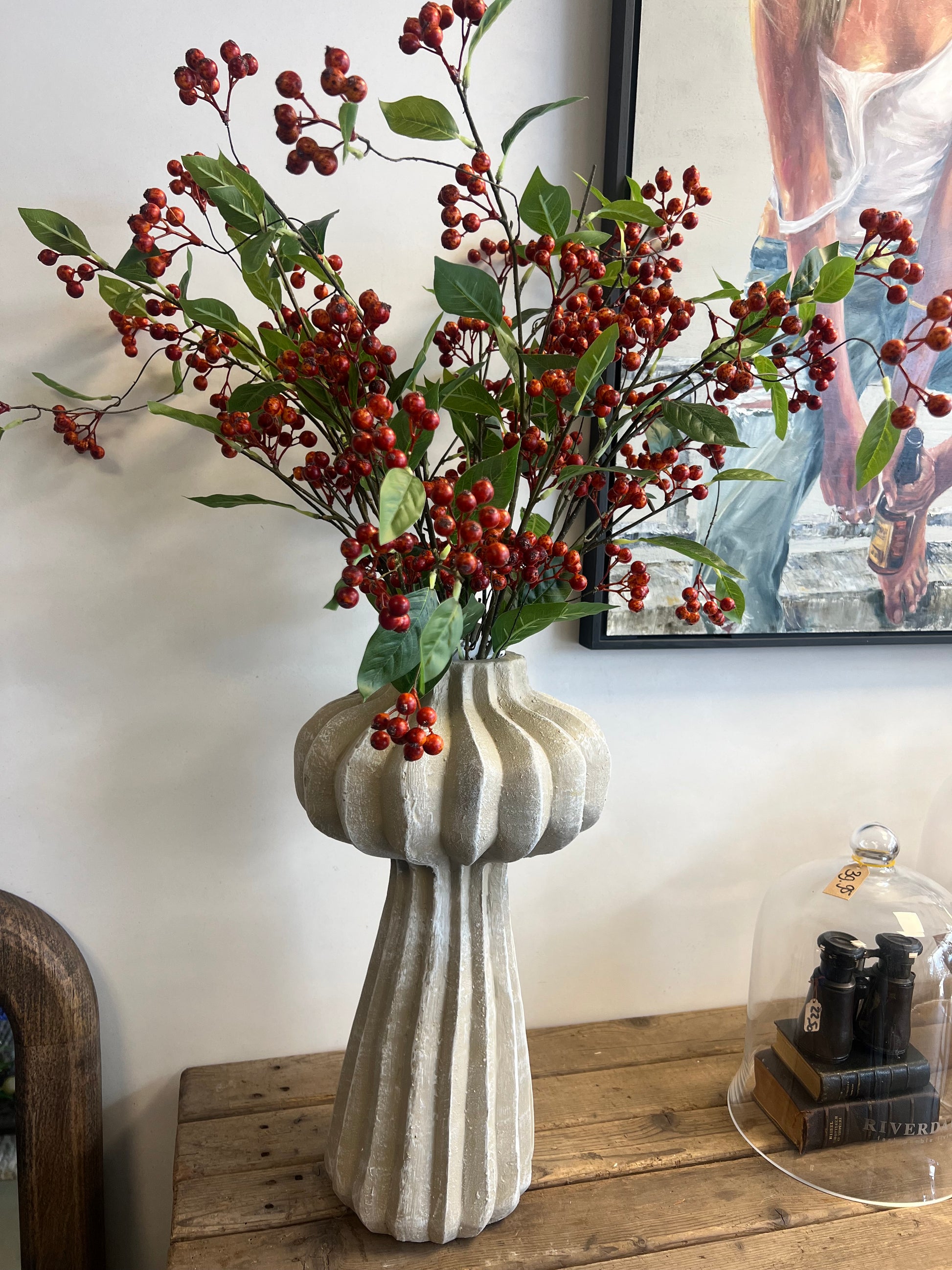 De vaas is niet waterbestendig en alleen geschikt voor zijden of droogbloemen