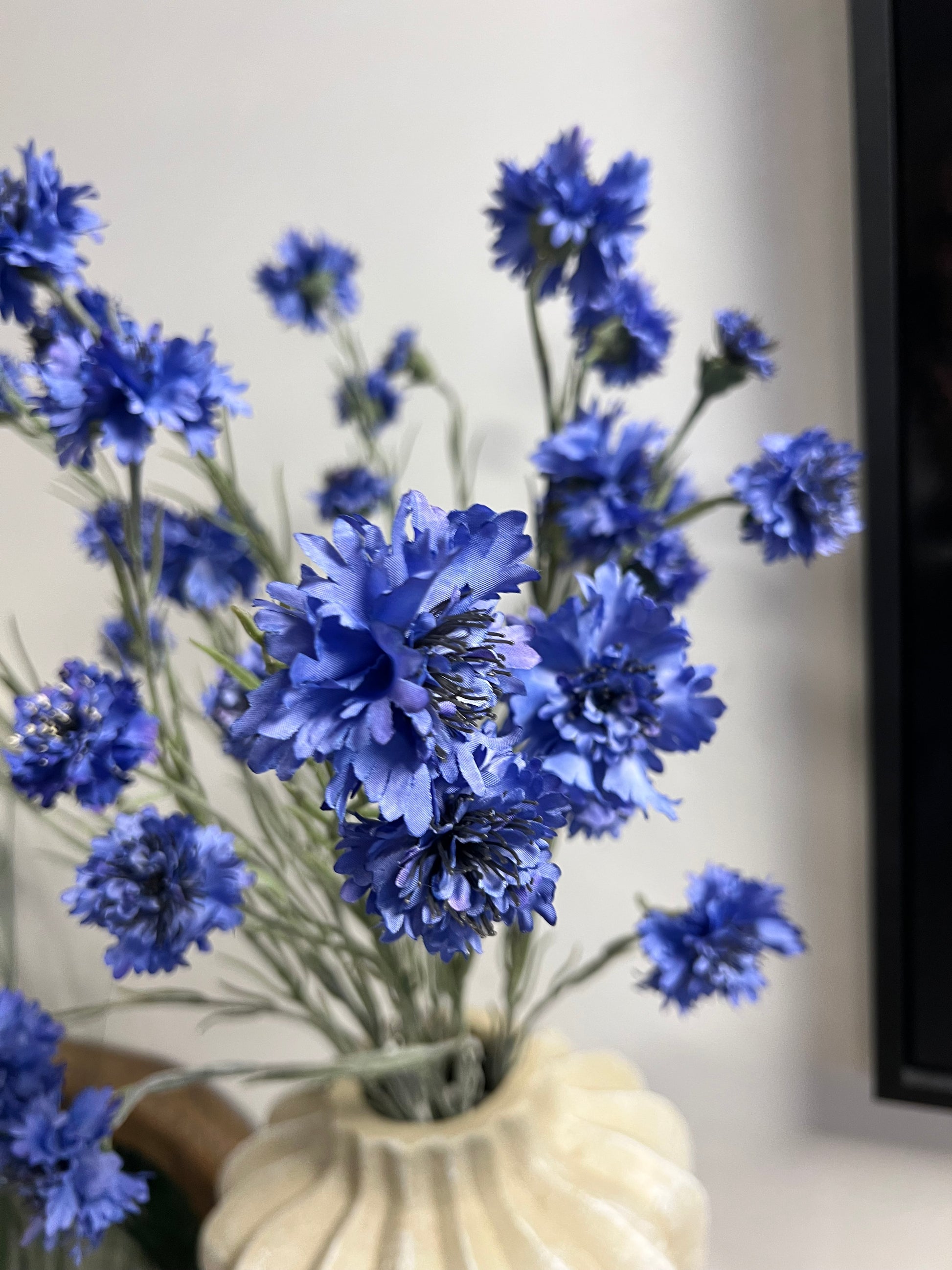 Breng de schoonheid van de natuur in huis met onze prachtige zijden korenbloemen. Deze levendige, blauwe bloemen zijn perfect voor elke ruimte en voegen een frisse, kleurrijke uitstraling toe aan je interieur. Gemaakt van hoogwaardige zijde, behouden ze hun uitstraling zonder dat je je zorgen hoeft te maken over verwelking of onderhoud.